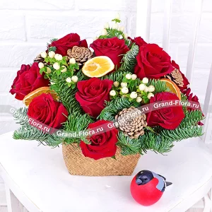 Новогоднее настроение - корзина с мандаринами и шоколадом