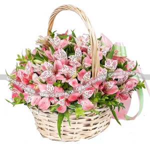 Волшебный день - корзинка из кустовых хризантем с сердечками