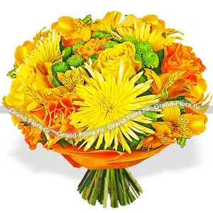 Букет оранжевых роз + хризантемы - Осенний коктейль
