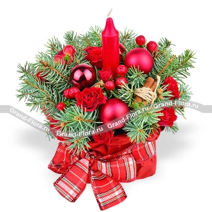 Зимний день - композиция на оазисе с елью и гиперикумом
