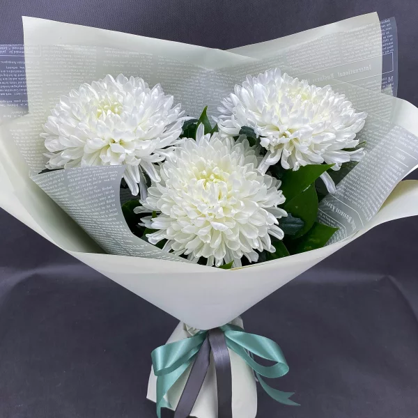 Элегантный букет из белых хризантем - это классическое цветочное произведение, которое никогда не потеряет своей актуальности и всегда будет радовать изысканной и такой нежной красотой.